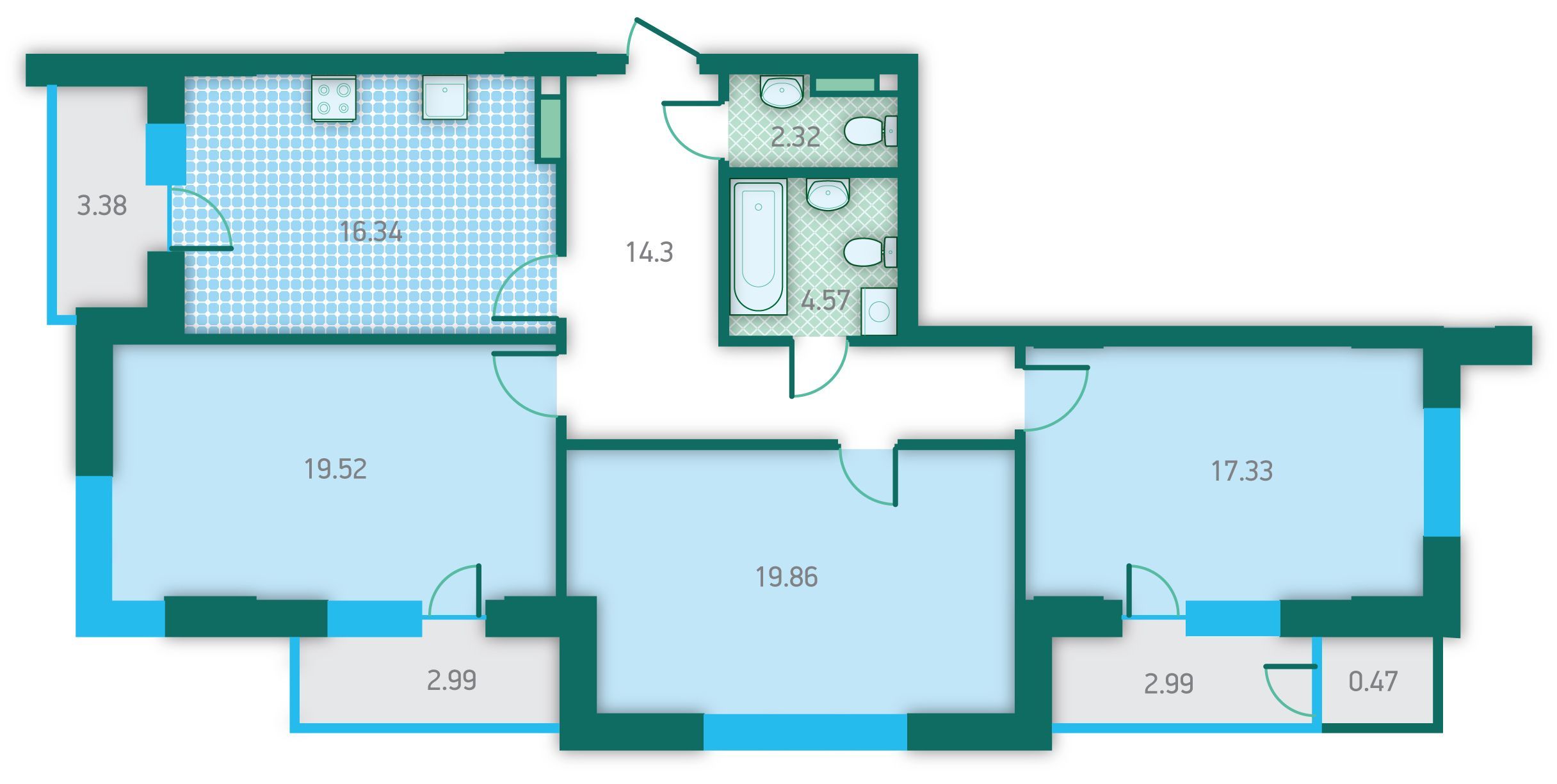 Трехкомнатная квартира 104.07 м2