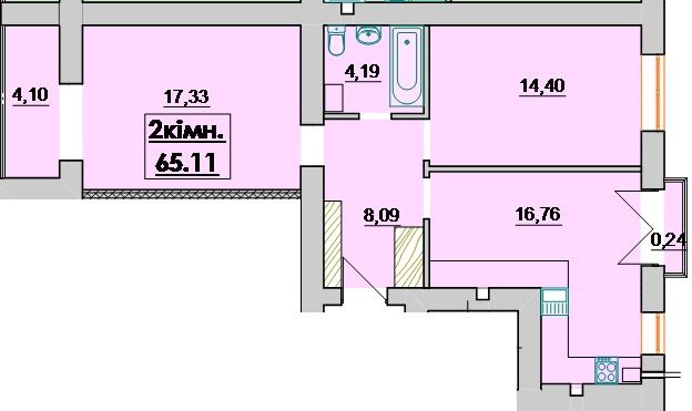 Двухкомнатная квартира 65.11 м2