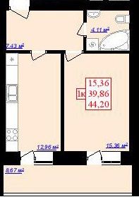 Однокомнатная квартира 44.2 м2