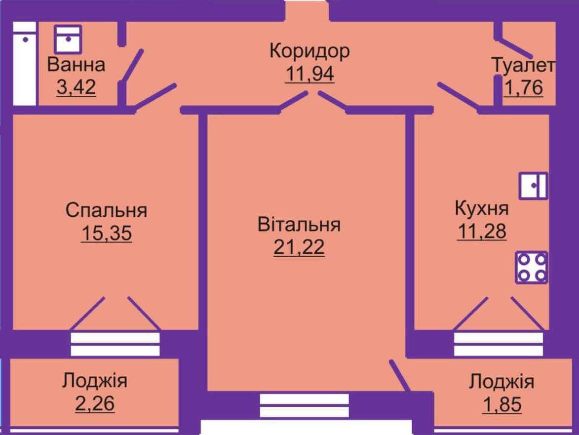 Двухкомнатная квартира 69.08 м2
