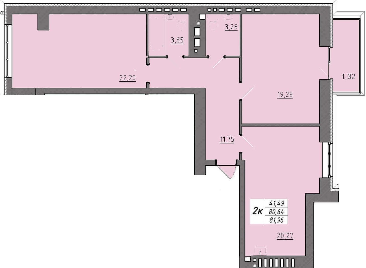 Двухкомнатная квартира 81.96 м2