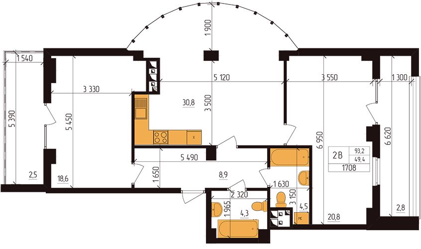 Двокімнатна квартира 93.2 м2