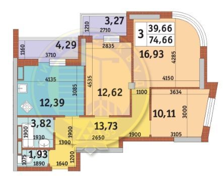 Трикімнатна квартира 74.66 м2