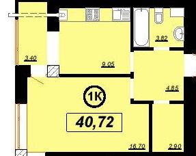 Однокімнатна квартира 40.72 м2