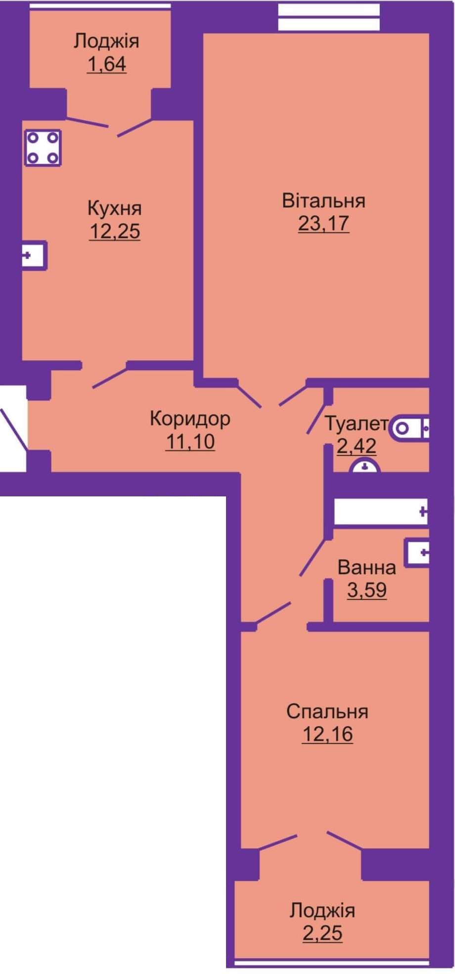 Двокімнатна квартира 68.58 м2